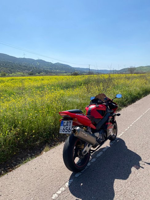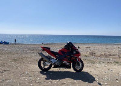 Back at the coast road, I headed for the sea. Mandria Beach Bar is another favourite destination for bikers but today, as it is closed, after the obligatory bike on a beach photos (will I ever get sick of those?) it was time to head home.