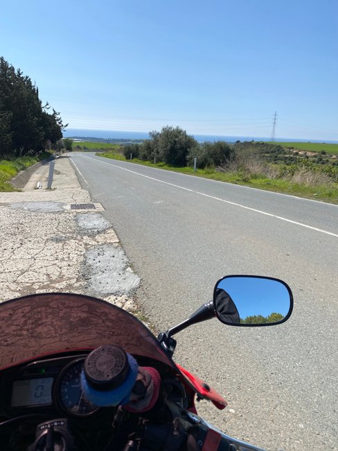 After a fuel up and tyre pressure check, I headed onto the highway for a couple of junctions. Unfortunately, the coast road near Aphrodite’s Rock is being repaired so this was the only way to ride up the coast.